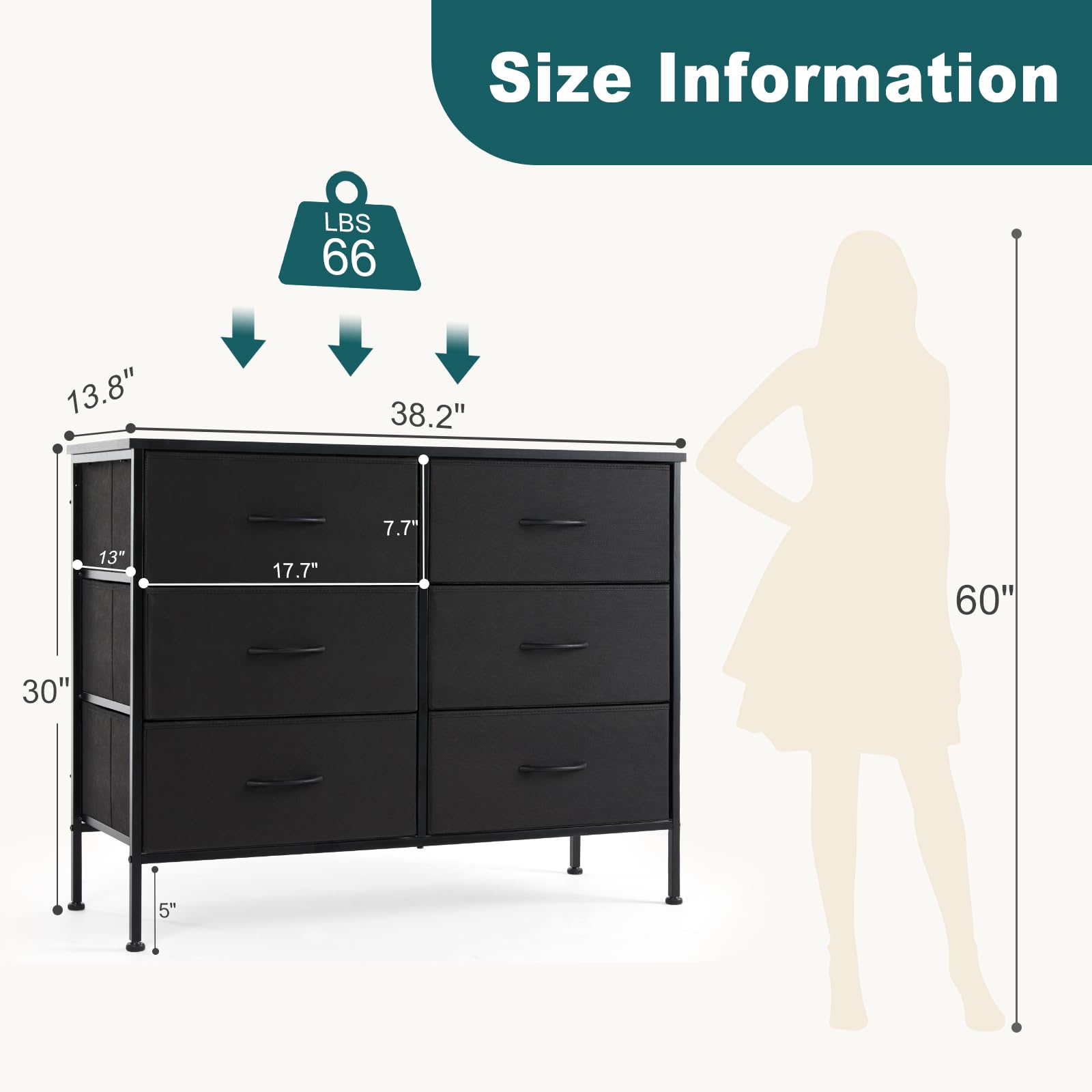 - Check FULL-size: This dresser for bedroom with fabric bins will save your space and is a great piece of furniture to store such as magazines, clothes, or children's toys. The wooden board at the top has a load-bearing capacity of up to 66 pounds and can be used instead of a TV stand.