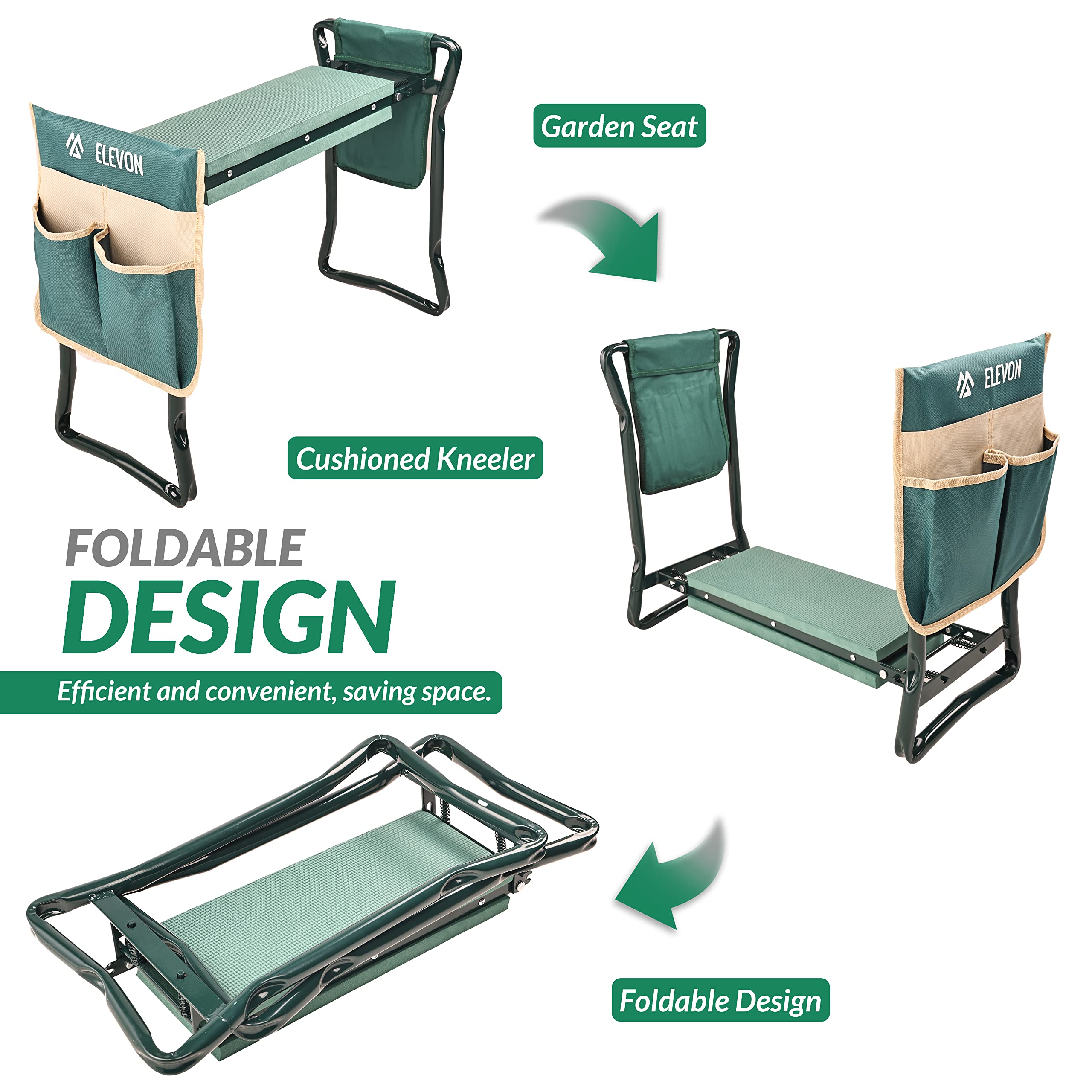 - ăGarden Kneeler Seată Our ELEVON Portable Garden Kneeler and Seat is a versatile and essential tool for every garden enthusiast, providing a comfortable and sturdy place to sit or kneel while working on your garden.Moreover, it makes a perfect garden gift for both men and women gardeners.